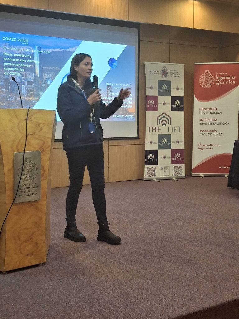 A continuación, Tatiana Evans, gestora territorial de Copec, presentó oficialmente el programa Desafío Futuro, una iniciativa que invita a estudiantes de educación superior, de pre y postgrado, a presentar ideas innovadoras en tres ejes estratégicos: nueva movilidad, nueva conveniencia y energía/sostenibilidad.