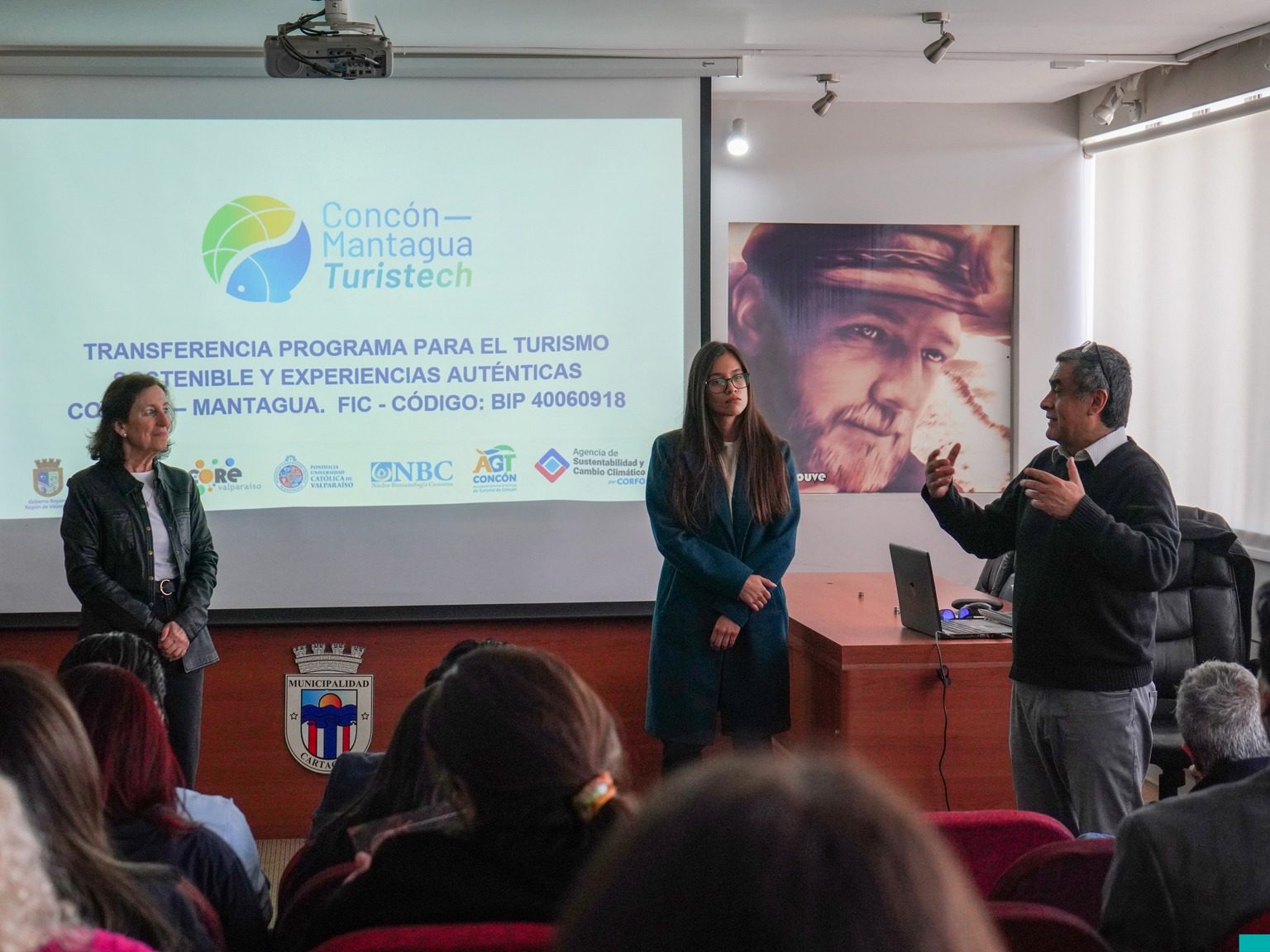 En representación del mundo académico, María Cristina Schiappacasse y Ana Paula Cobos, del Núcleo Biotecnología Curauma (NBC) de la Pontificia Universidad Católica de Valparaíso, presentaron el proyecto «Concón-Mantagua Turistech», financiado por el Fondo de Innovación para la Competitividad (FIC) del Gobierno Regional de Valparaíso. La iniciativa busca fortalecer el turismo sostenible mediante soluciones basadas en la naturaleza, una experiencia que la directora Maribel Echeverría consideró replicable en la comuna. «Ellos trabajaron con jóvenes emprendedores para potenciar los atractivos naturales. Nosotros podemos llevar ese aprendizaje a Cartagena, donde contamos con el humedal urbano, las caletas, el estuario y la quebrada del Tranque, espacios que debemos proteger y poner en valor».