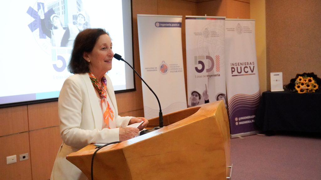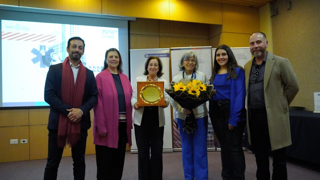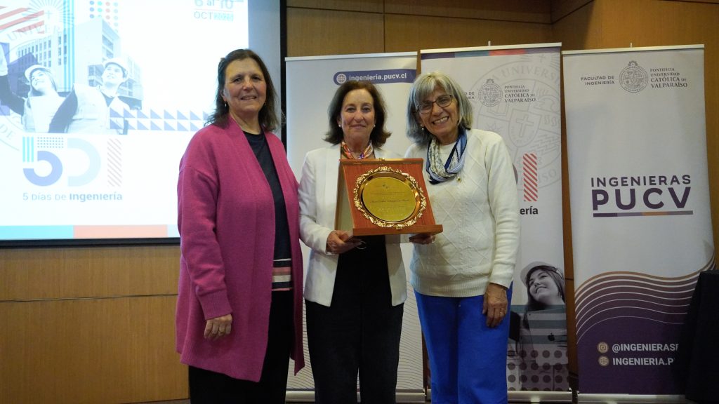 La distinción fue entregada por Leslie Pérez, directora del Área de Participación y Liderazgo Femenino de la Facultad de Ingeniería PUCV, quien hizo énfasis en la importancia de tener referentes femeninas y la perspectiva de género en la Ingeniería.