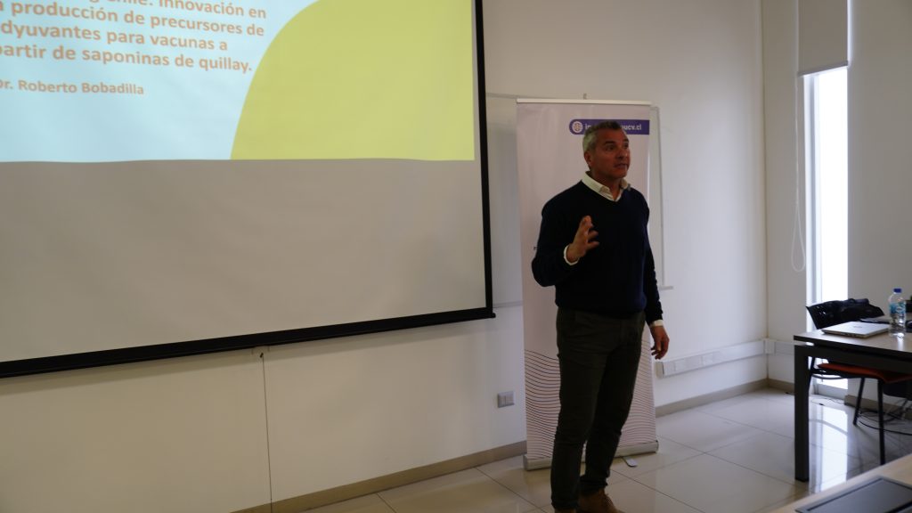 Bobadilla compartió sus experiencias con los estudiantes y presentó sobre cómo la empresa ha innovado en la producción de vacunas a partir de estos extractos botánicos.
