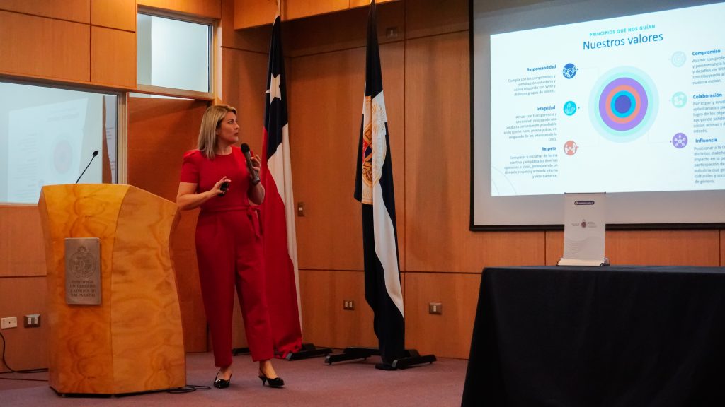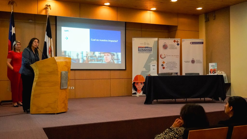 Andrea Valdebenito, Académica de la Escuela de Ingeniería en Construcción y una de las fundadoras de Conecta Talento, destacó los importantes avances que ha tenido este proyecto en los últimos tres años, indicando que partieron con un seminario que contaba con una sola empresa, pero en 2025 debieron hacer 3 instancias, ya que contaban con la participación de 15 empresas.